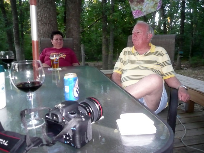 - Sunday, June 26 we drove from Houston to Ennis TX, to visit Dianne's niece Juli (12 photos). Juli's daughter Katie and her husband TJ had invited us all to their new mobile home for lunch. Daughters Heaven and JoJo were there, sister Amy and boyfriend Mathew came over, and TJ's sister was there too. At 2pm we left for Sulphur Springs (12 photos), heading for Martha's cousin Carolyn and Tom's. We arrived by 4:30, and visited until 7:30, when Cousin Steve (16 photos) arrived from Tonganoxie KS - on his motorbike! Carolyn prepared a delicious salmon Nicoise dinner, and we shared lots of family reminisces.
